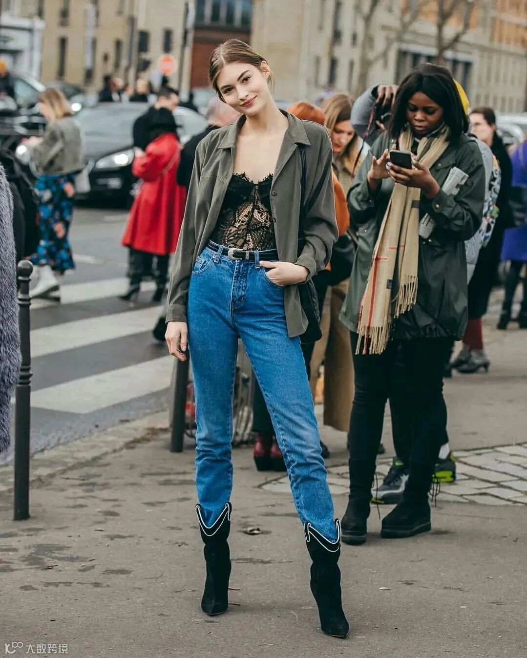 直筒牛仔裤的腰线和大腿根部保持直线,可以很好的隐藏胯宽问题,因为裤筒不是贴腿设计,能够收住完美臀型。