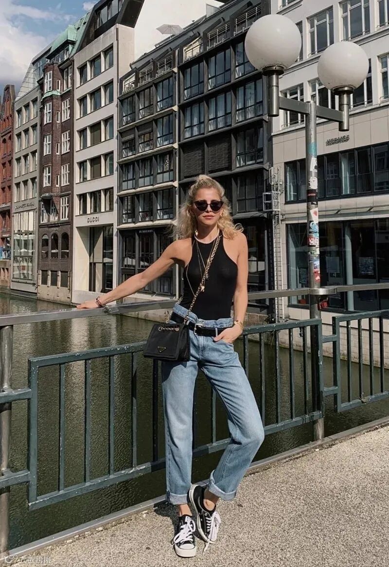 而超宽松、超长的牛仔阔腿裤多了几分复古的感觉,加上高腰设计,走路带风+腿长2米不是梦。