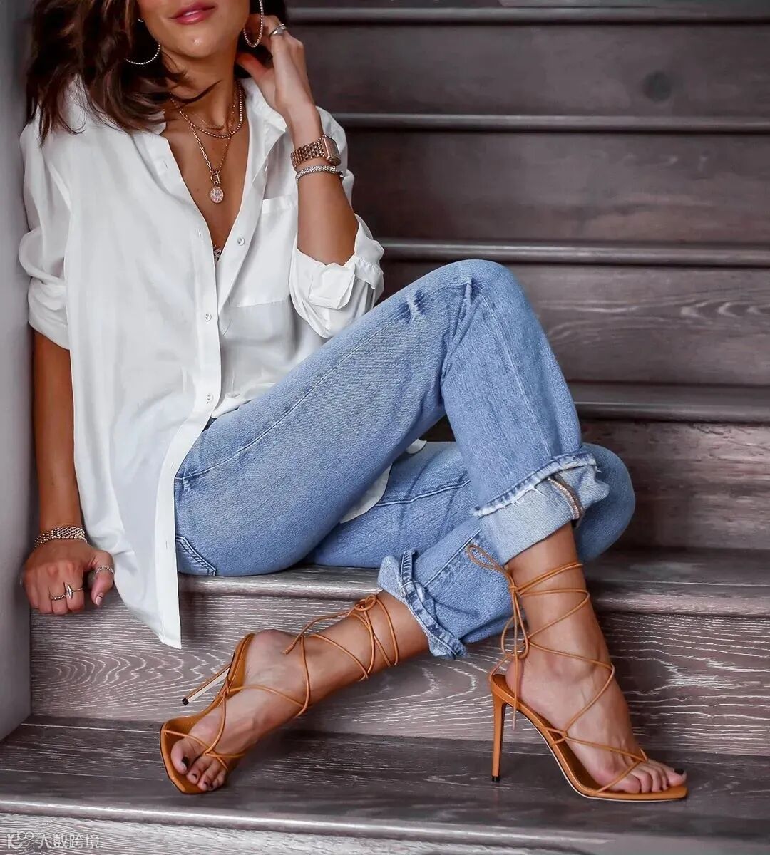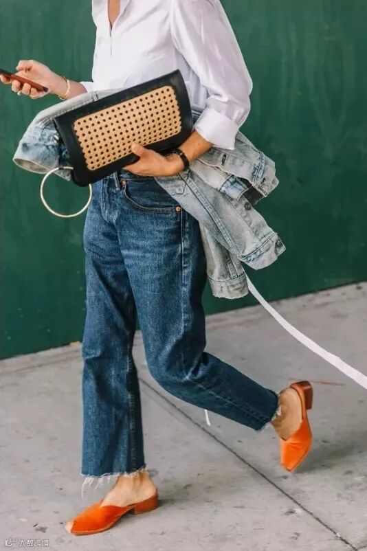 九分的牛仔裤=显瘦显高的利器,露出脚踝的方法百试百灵。但最佳长度就是刚刚在脚踝处,太长或者太短都会有反效果。
