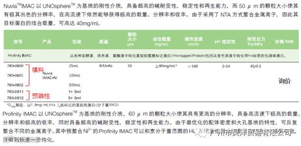 Bio-Rad Nuvia IMAC采用的是NTA方式。一般说来,NTA方式具有更高的结合载量、更广的应用范围。