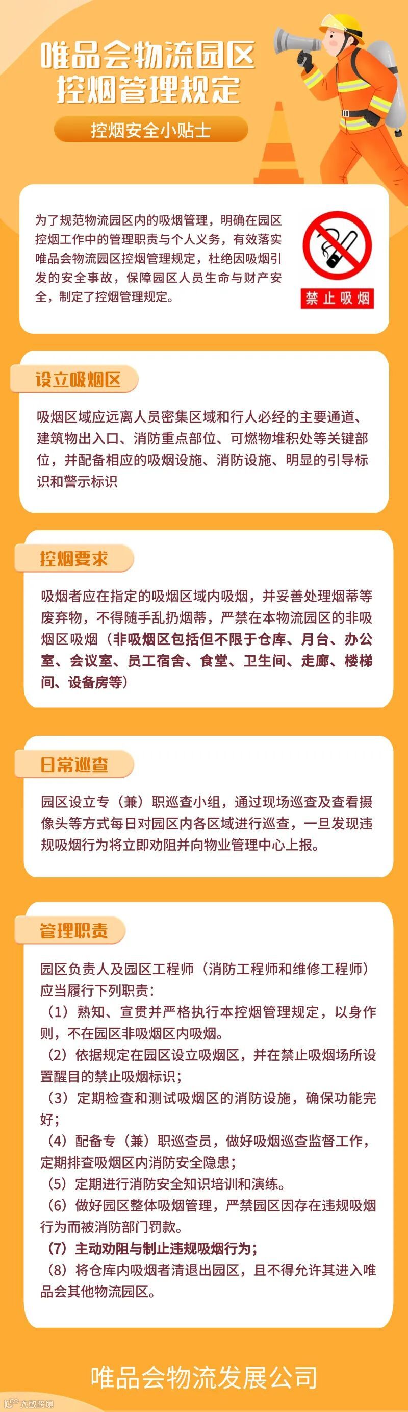 唯品会物流园 控烟管理规定 唯品会物流发展公司