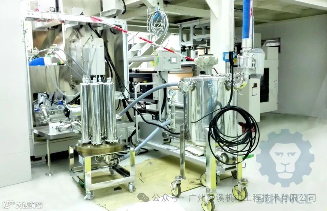 阳极和阴极浆料,黏度15000CPS, 输送速度60L/分钟,管道长度120米,含管道清扫系统等。