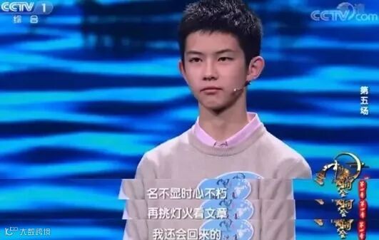 还有很多选手,比如答起题来宠辱不惊、气场强大的13岁的邓雅文小妹妹;在PK时面不改色地把一首诗从头到尾背下来的12岁小弟弟陈滢;已经连续参赛四季,屡败屡战的陈更;这些少年,身上都有一种对诗词发自肺腑的深情。