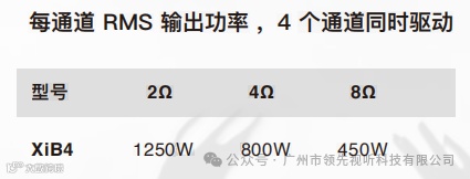 与Linea的高功率M和C系列放大器相同的机型,XiB4可以为每个通道提供稳定的1250W功率输出到2Ω,或者为桥接对提供2500W功率输出到4Ω。