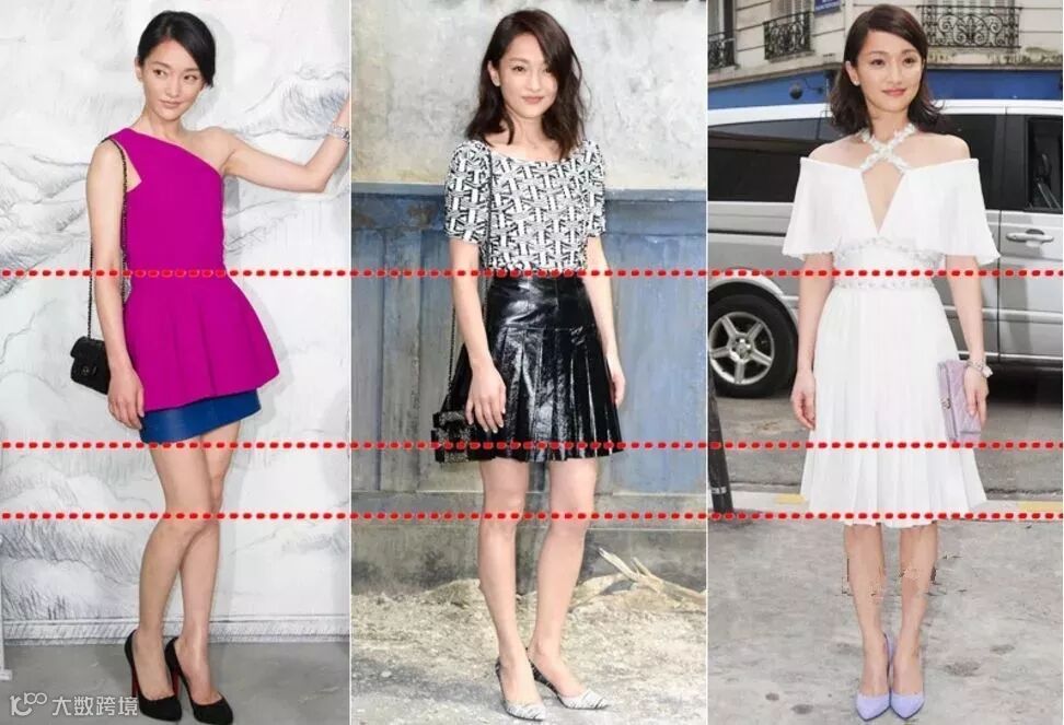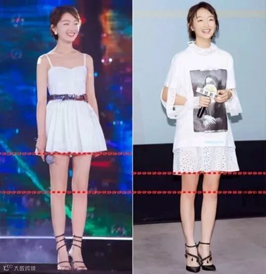 拿是小个子的周冬雨来说好了,凸显腰线和不凸显腰线是不是差很多,另外穿裙长在膝盖以上的单品也会显高很多。