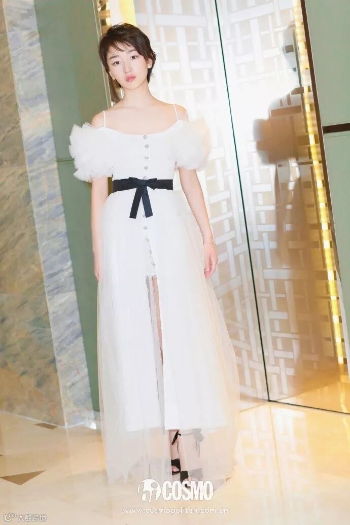同为小个子的周迅也是,中间露出腰线、裙长在膝盖以上的那套造型是三个造型中最显高的。