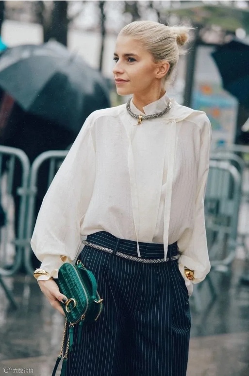 但衬衫也不都是千篇一律,像下图中这种飘带款式的衬衫既正式,又个性好看。