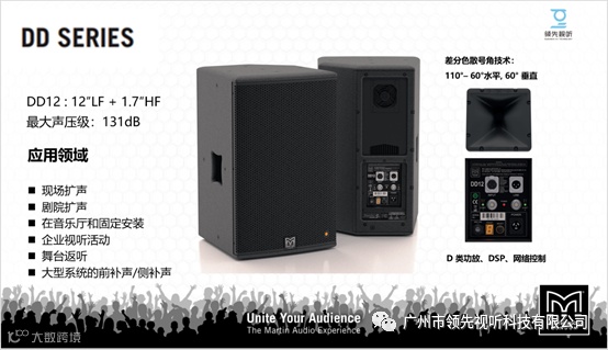 多功能的DD12定义了有源两分频扬声器系统的终极性能和多功能性。它结合了板载网络、DSP、D 类功放和业界领先的驱动单元以及差分辐射号角技术,保真度、输出能力和覆盖的一致性等方面设定了全新的行业标准。