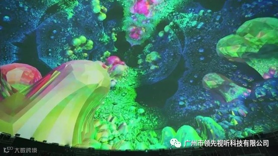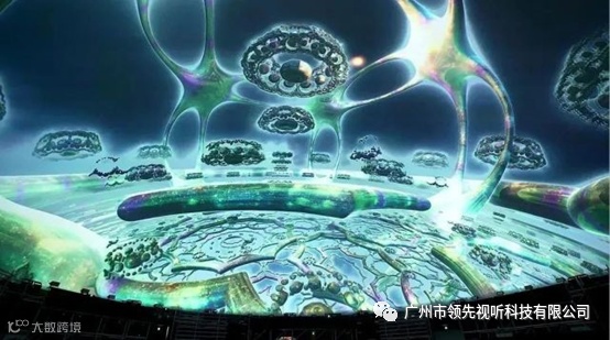 光影视界是典型的球幕系统,其半球形银幕宛如可以容纳浩瀚苍穹一般,将观众的视角全部“禁锢”在银幕画面之中,使得观众目光所到之处几乎全部是栩栩如生、绚丽多彩的逼真画面。