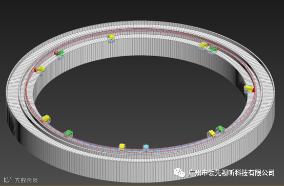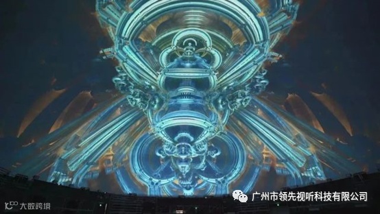 采用“7+4+1”的投射方式——球幕的顶部使用1台投影机进行投射,第二层使用4台投影机,依此类推。单台投影面积约为180平方米,刚好可以把屏幕铺满,一方面节约了成本,同时也保证了项目的效果。