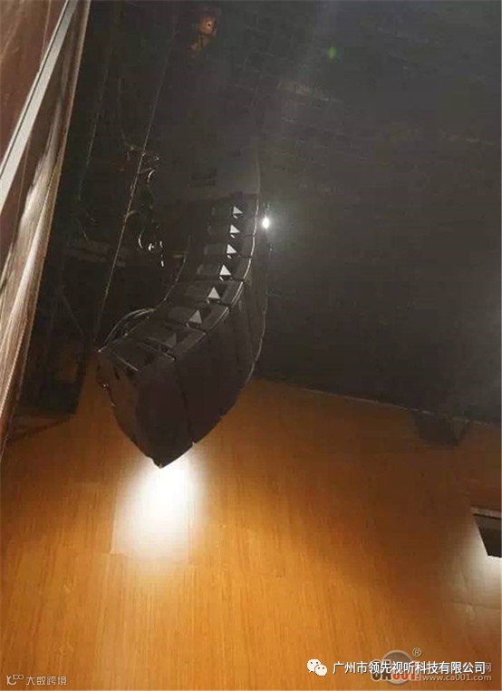 扩声系统采用左中右设计,左右及中央声道近、远场全频扬声器选用 WT2、WT3共18只,声音均匀覆盖全场,并且有着超高的声音清晰度。舞台前方安装了台唇补声扬声器AQ6共12只,给近场观众区足够的声压级并且保证声音质量。舞台部分9只AQ15扬声器做为固定返送扬声器,为了满足多人员演出剧目,增加了15只XD12扬声器做为流动返送扬声器。另还配有超低频音箱5只WS218X,为全场提供震撼的低频效果。