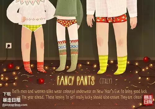 风情的意大利人在新年到来的前一天,不论男女老少都会换上五颜六色的彩色内衣裤,希望能迎来好运气!
