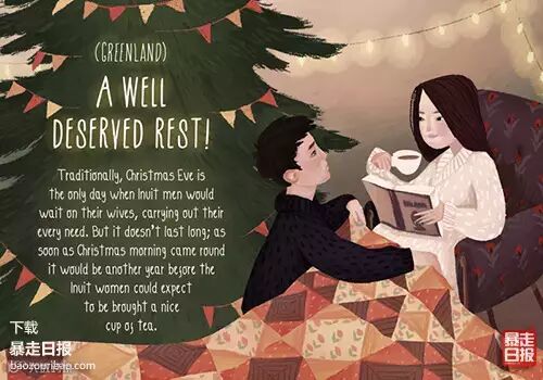 在寒冷的格陵兰岛上,平安夜这天男人必须对妻子百依百顺(除了啪啪啪外),并且尽全力承担家务好好照顾妻子,对于女人来讲,这一天是非常美好的日子。