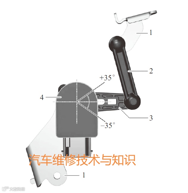1-支架;2-带球面接头的连杆;3-偏转杆;4-车辆高度传感器