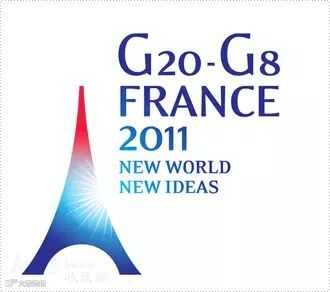 2011年G20峰会在法国西部海滨城市多维尔举行,口号是“新世界、新观念”。上图是本届法国担任主席国的G20-G8夏季联合峰会的官方标识(英文版),融合了法国国旗、巴黎铁塔和太阳光的元素。