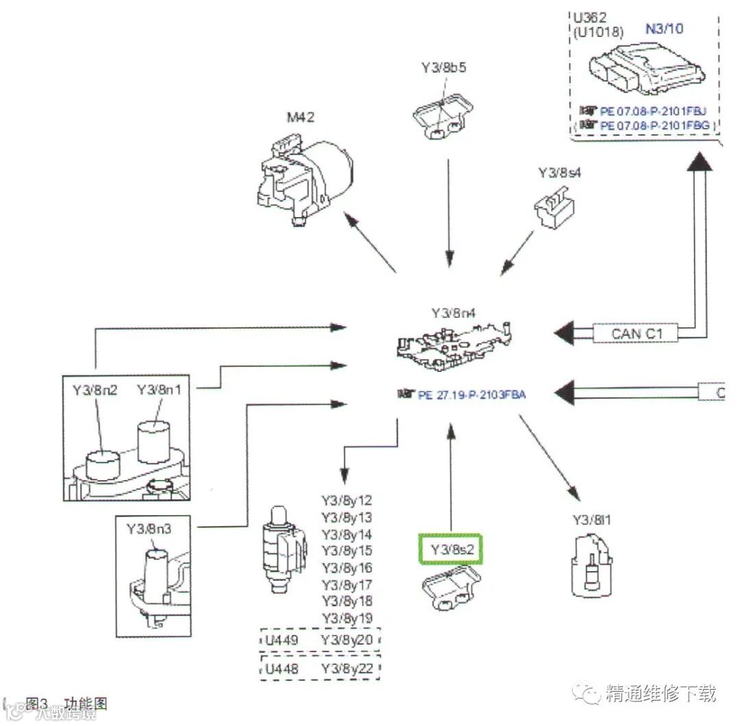 图3中的Y3/8S2就是变速器温度传感器,用它来探测变速器的温度。