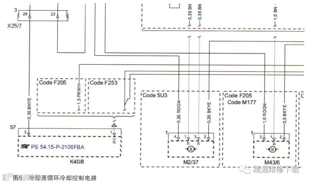 M43/6就是变速器冷却液的循环泵。从电路图可以得出它是由N127控制的,它的供电由K40/8供电。