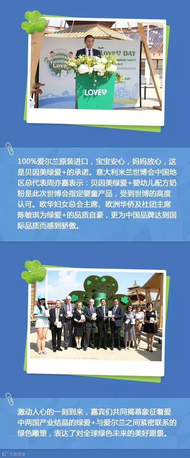 导读:【世博绿爱+日】“贝因美绿爱+爱尔兰绿色溯源鉴证交流会”在米兰世博爱尔兰馆正式拉开帷