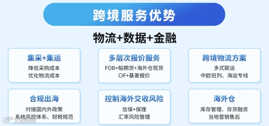 深耕小家电、五金、建材等特色产业带和专业市场,助力中小企业“把链条做长、把利润做厚”:从打通上游资源供应链、期货套保锁定成本、到合规出海“一站式服务”,从产品出海到品牌出海,从安全收汇到海外仓配送与本地化运营,还包括跨境电商toB营销支持乃至大数据反向定制开发指导等。