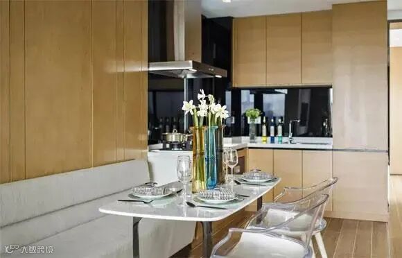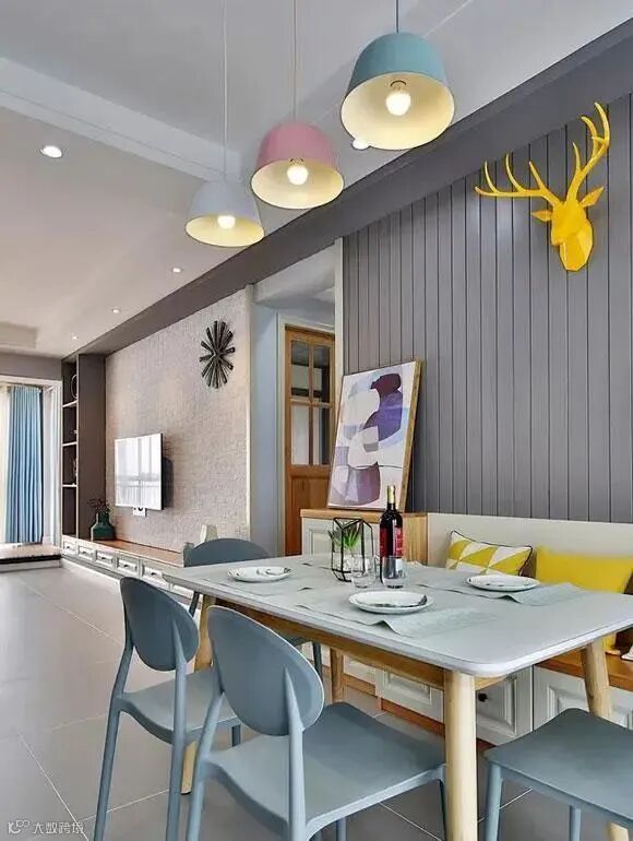 就算家里没有独立的餐厅空间,在设计时也要通过色彩的变化从视觉上进行区分。