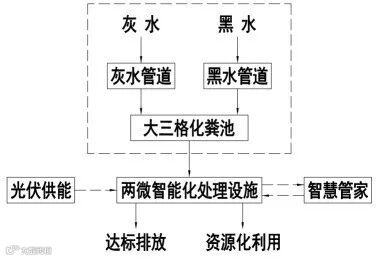整改过程中,秉持“统筹规划、科学治理、因地制宜、生态优先、长效管理”总体思路。通过详尽调查,利用污水管网及大三格化粪池,采用固定床微生物生态(FBBR)处理工艺。农户污水经收集管沟进入大三格化粪池,再流入微建设智水宝进行处理。该设备利用微生物同步硝化反硝化反应优势,优化处理过程,节约建设、运行成本与占地面积。