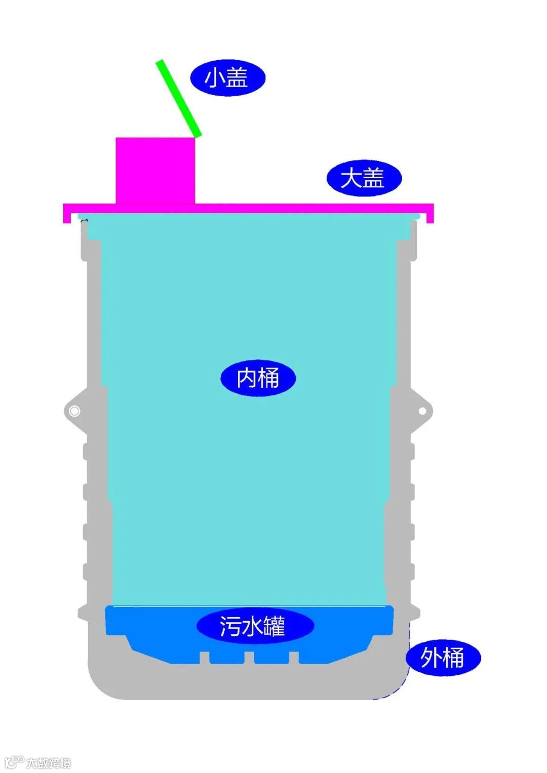 ►地埋垃圾桶2/3部分埋在地下,密闭存储。垃圾不外露,污水不外溢。