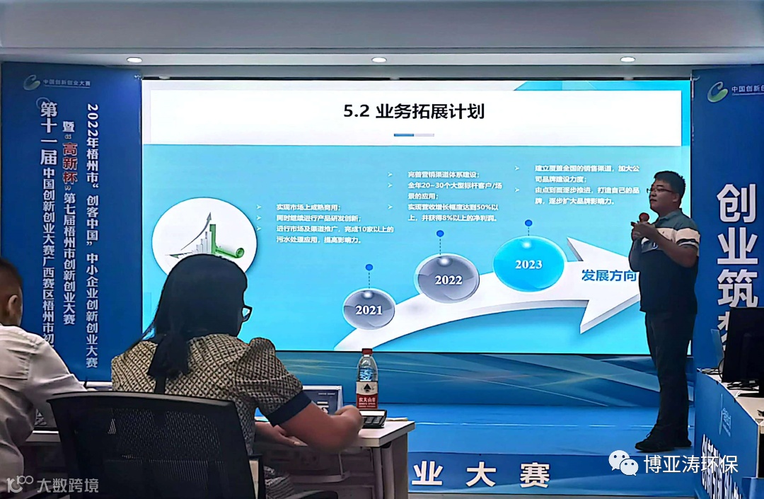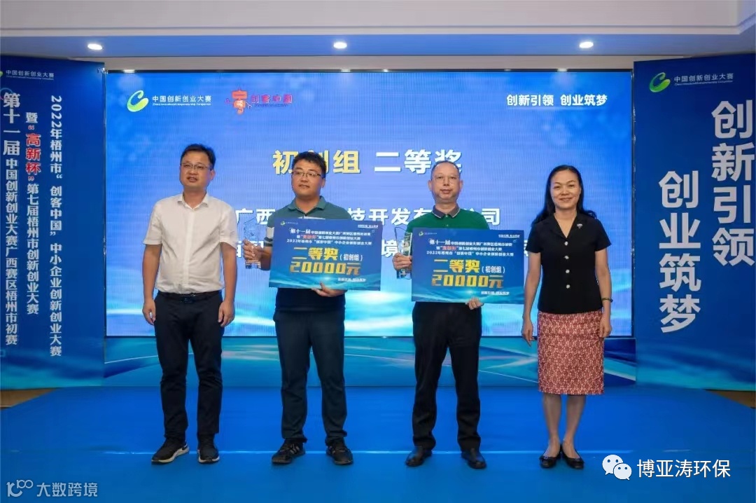 广西智碧达智慧环境科技有限公司项目成功进入大赛路演环节。其生物强化(E-A²/O)污水处理解决方案项目,凭借独特技术和先进整合模式,从一千余家参赛企业中过关斩将,荣获本次大赛初创组二等奖。