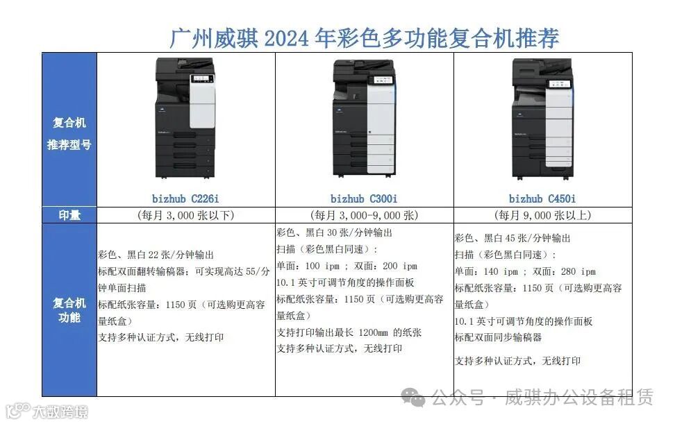 威骐提供多种租赁方案,可根据不同印量需求推荐合适的复印机型号。
