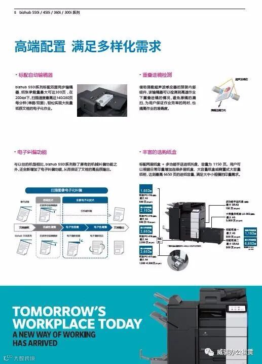 第三:复印机功能和配件繁多选择自己刚需的功能和配件的例如自动进纸、装订等等,可以节省你很多宝贵