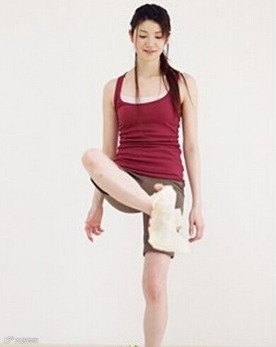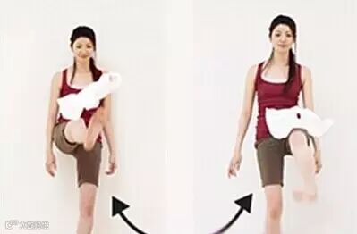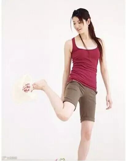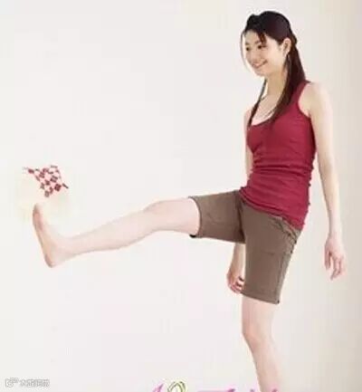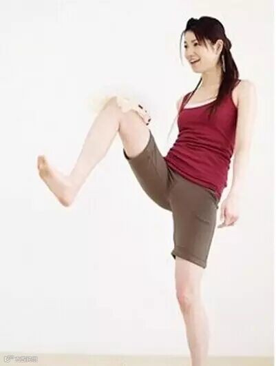 3、小腿向后侧踢起,带动大腿外侧肌肉与臀部的深层肌肉,还能翘臀呢!左右交替踢起的动作难度较大,不妨先用单脚运动,待慢慢熟悉后加大强度。