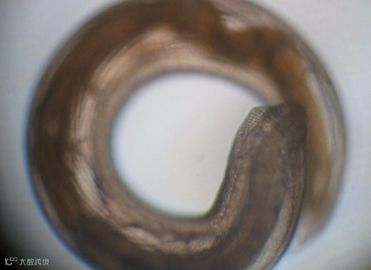 实验君把它放在解剖镜下观察。我勒个苍天!一大片蠕动的虫子!透明的表皮,黄色和白色的身体,有的展开身子像蚯蚓一样游动,有的盘起来像螺蛳一样!可以想象这些家伙在我们的胃里会是什么样!