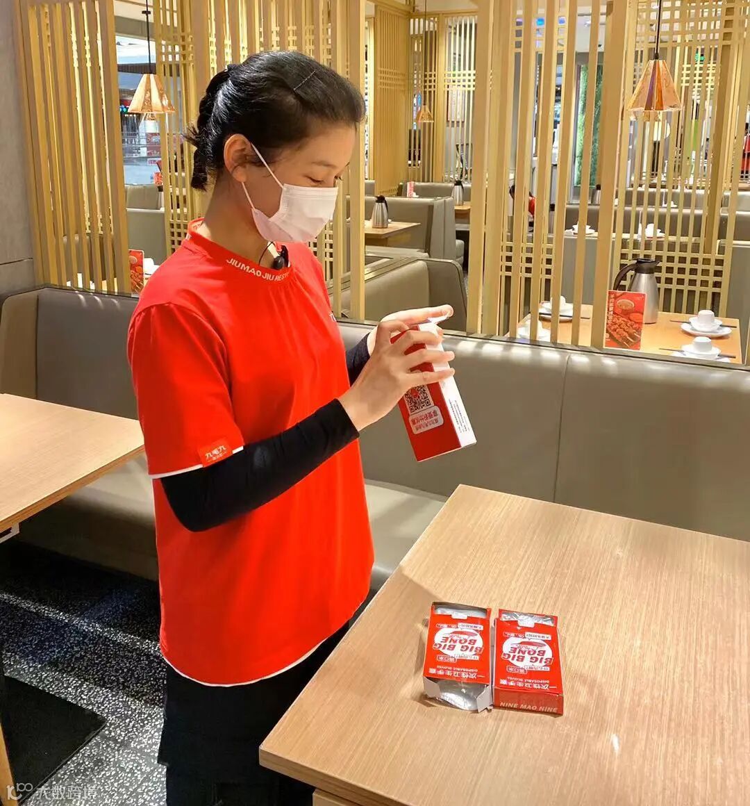 刘锦妮平时会将完整且干净整洁的手套盒进行回收,以替换破损的手套盒,使得顾客每次打开餐桌抽屉时都能看到完好无损又崭新的物料。