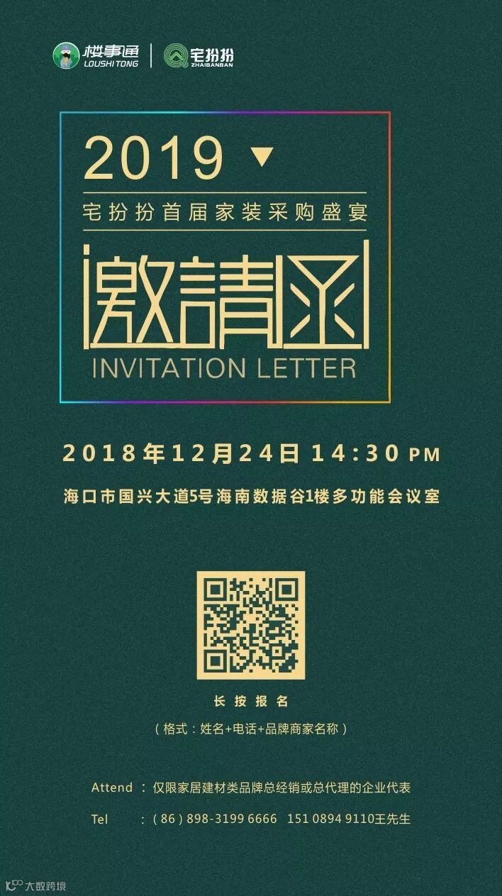 参会对象:仅限家居建材类品牌总经销或总代理的企业代表