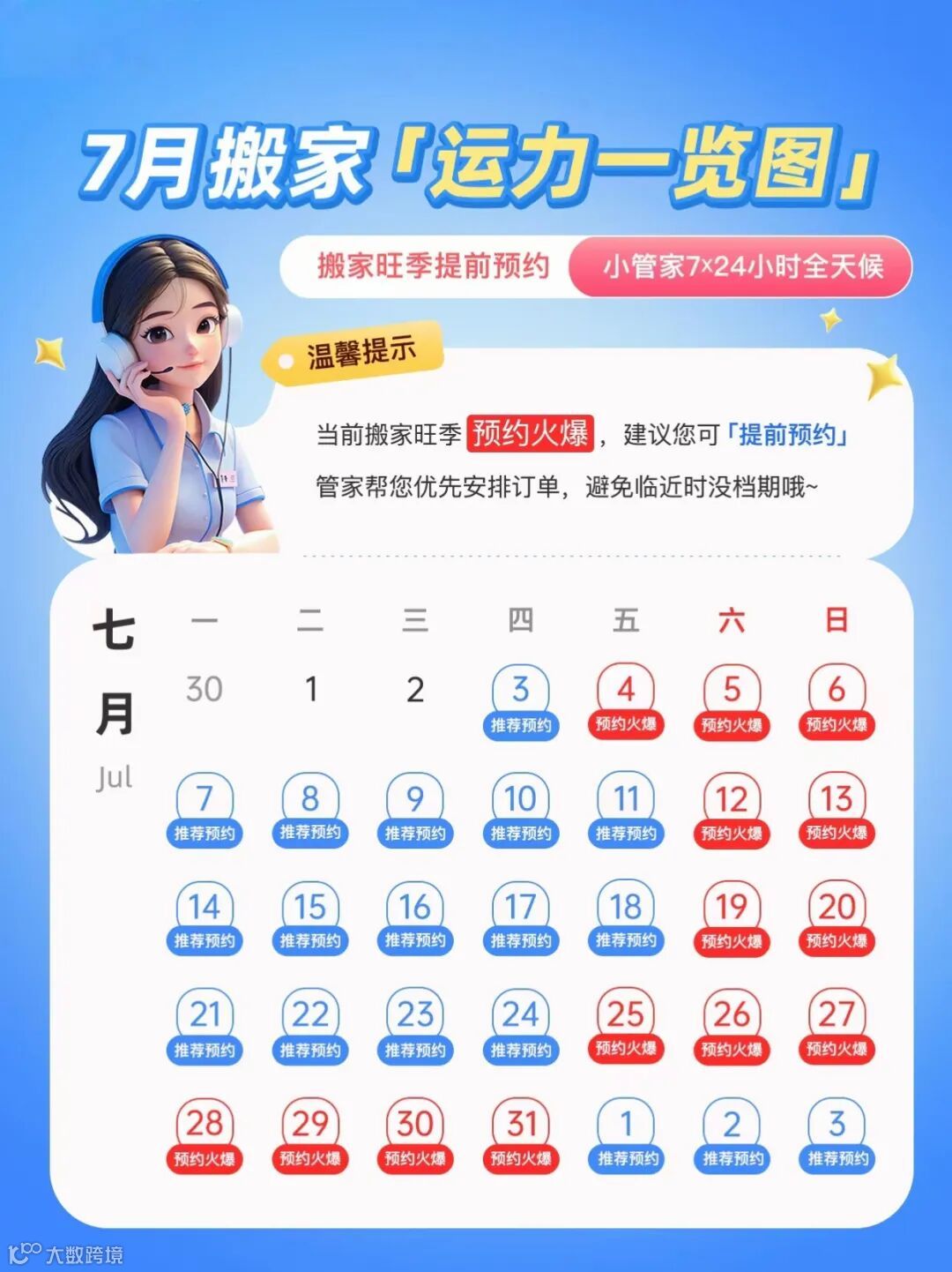 为避免没有档期,有搬家需求的朋友建议提前预约,专属小管家会为您优先安排订单哦~