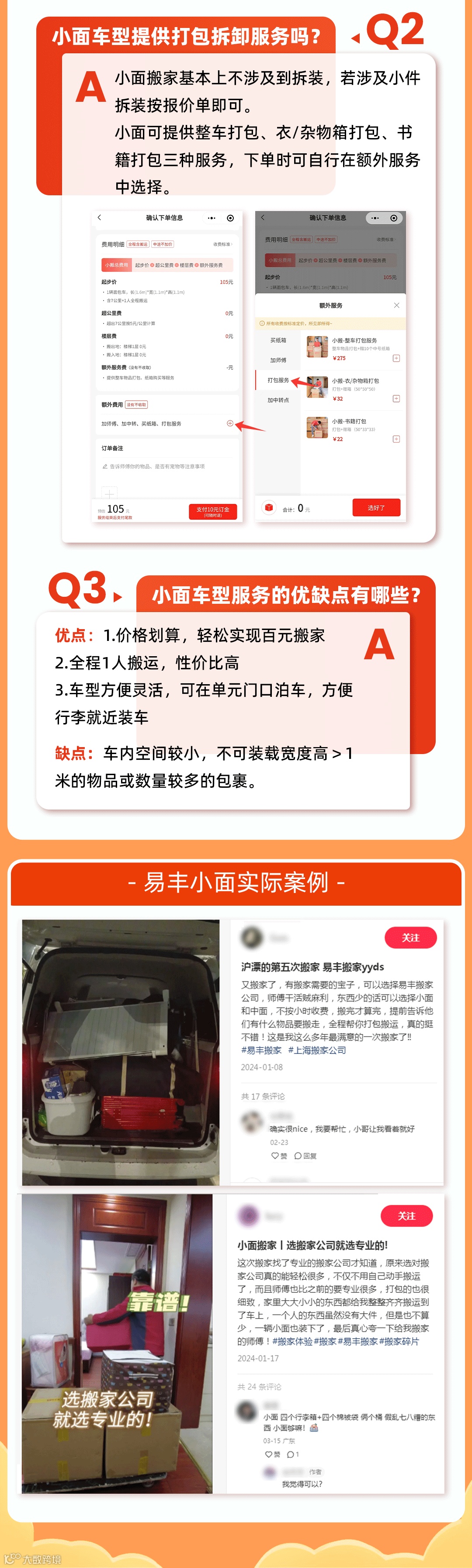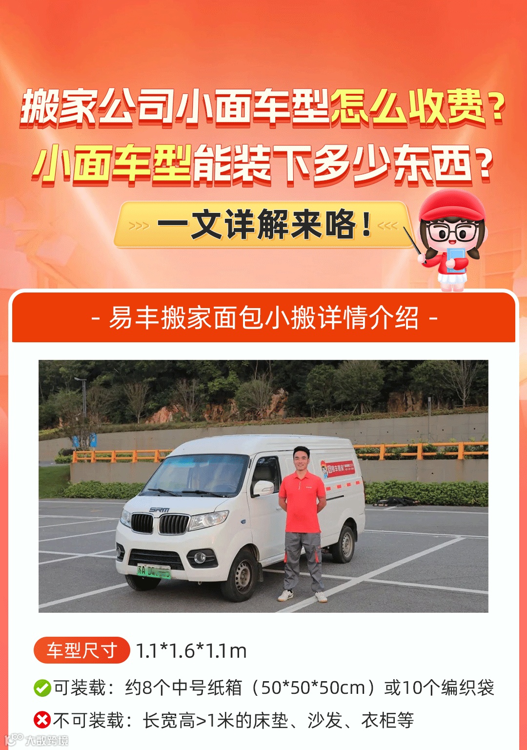 拿不准的,可以直接将物品长宽高和物品数量拍照发给客服,让专业客服来评估和推荐合适车型。