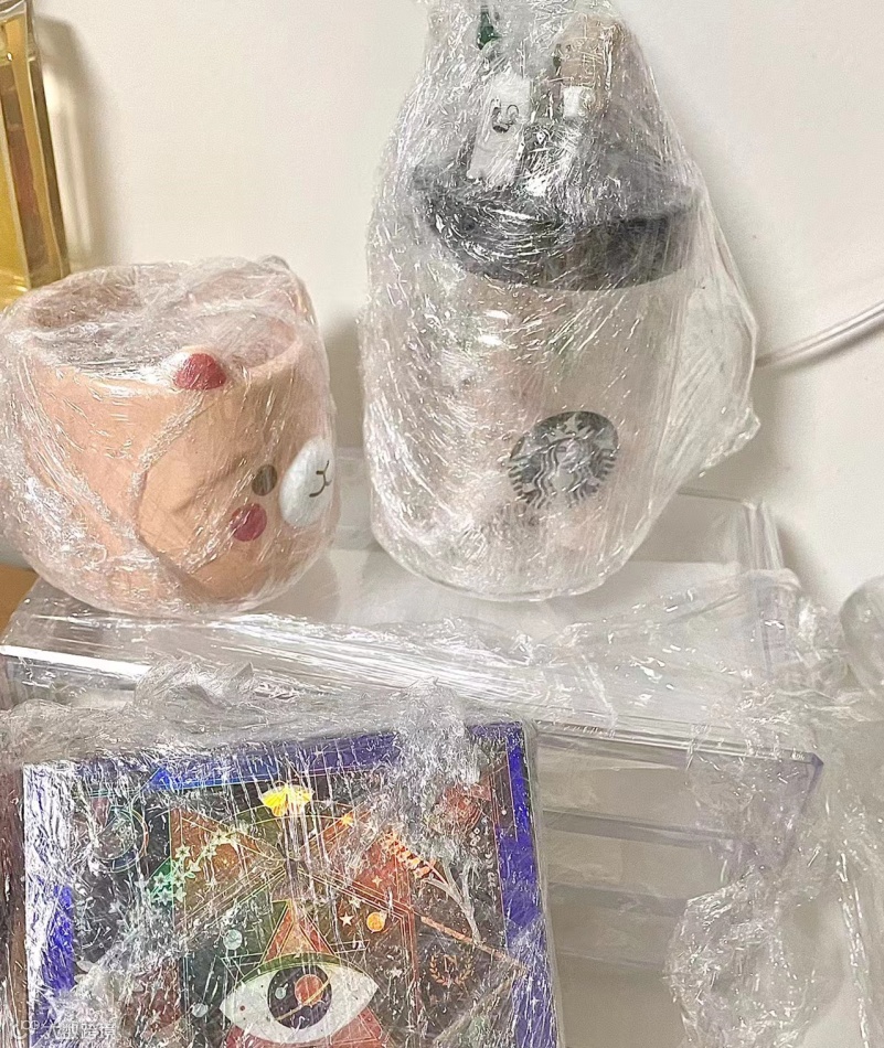 @小白:缠绕膜真的特别好用,鞋架,置物架,收纳盒,都能完完全全的包裹起来,啥都能缠,缠之前最好按用途整理好,之后拿剪刀一剪直接开用。
