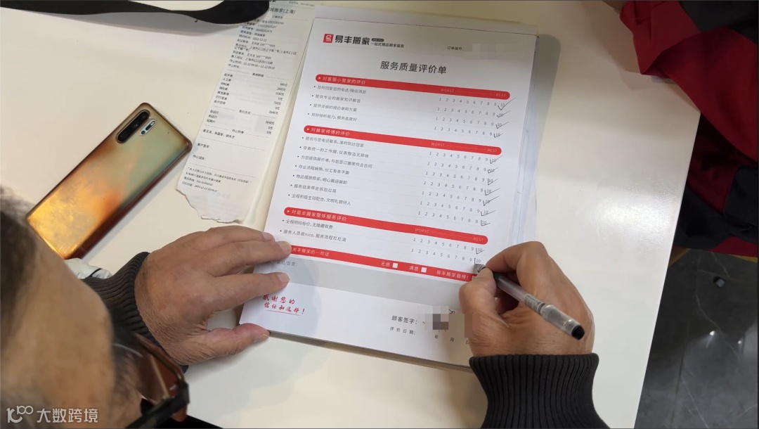 所有物品摆放到位,客户现场清点验收、核对费用清单,检查无误后签字付款。