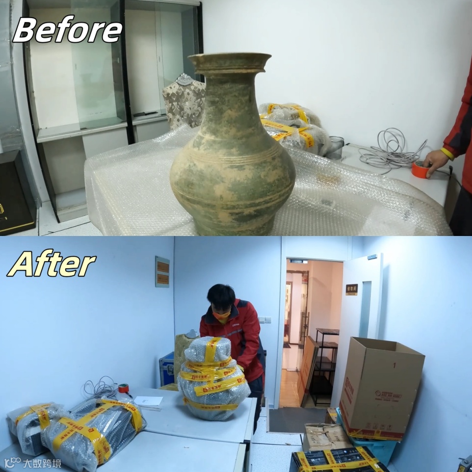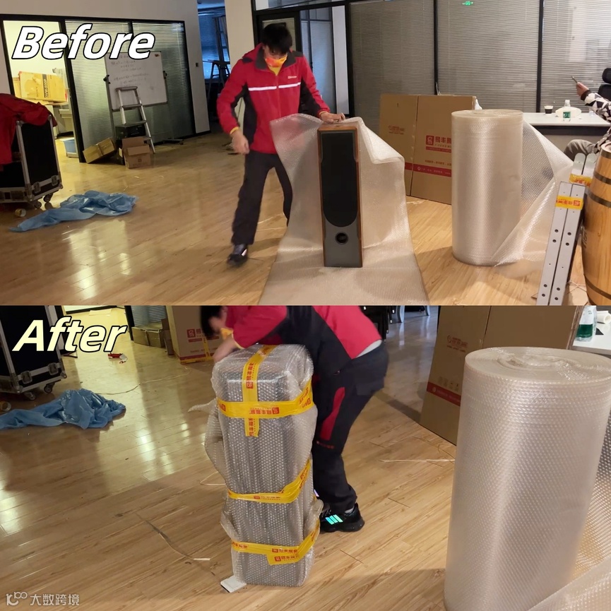 针对办公摆件,师傅们用多层气泡膜防护,易碎贵重瓷器这不就轻松拿捏了吗?
