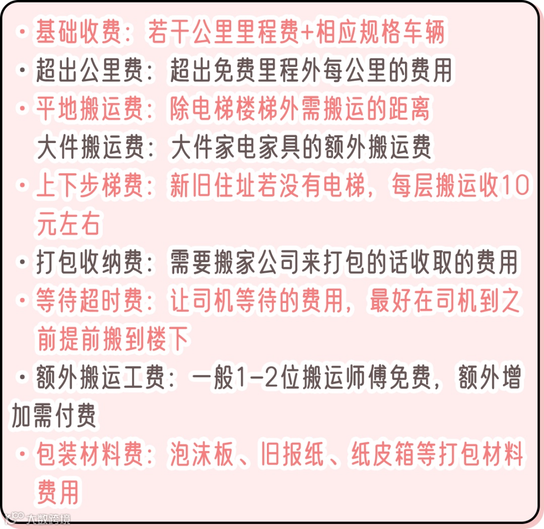 搬家公司的收费名目还挺多的,下可以根据自己的实际情况,仔细算算哪些收费项目与自己有关,再综合对比看看哪家对你来说更划算。很多搬家公司的