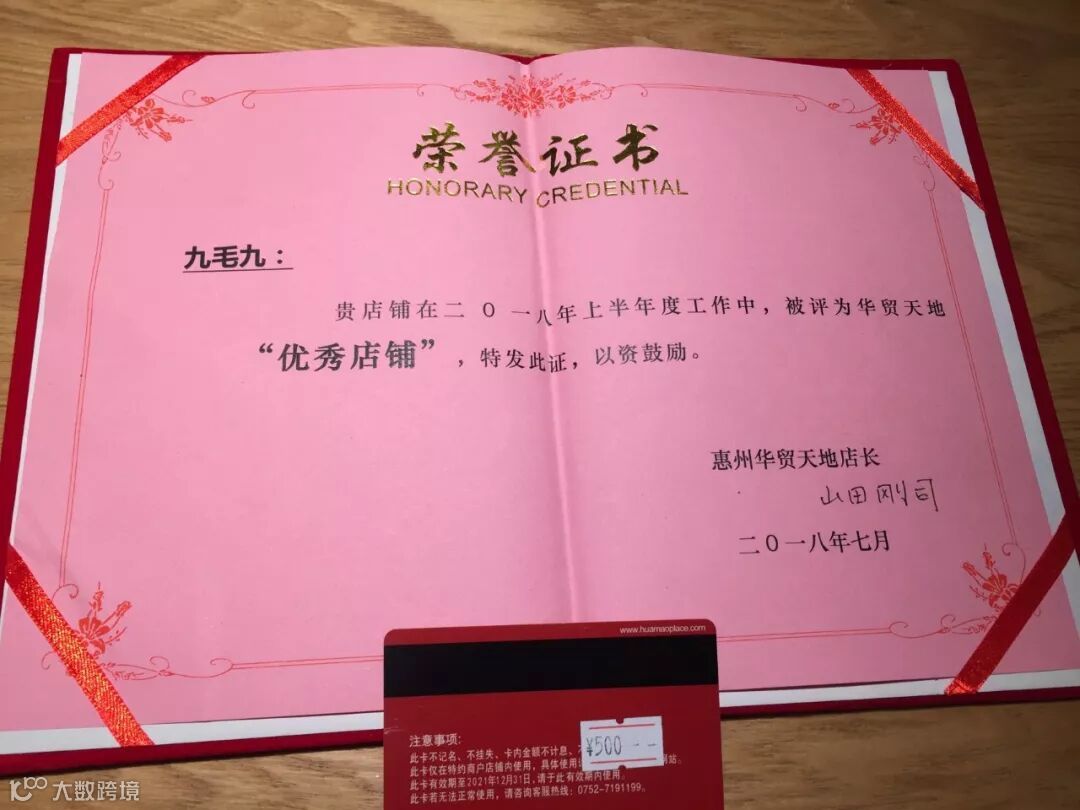 第三季度“优秀店铺”称号