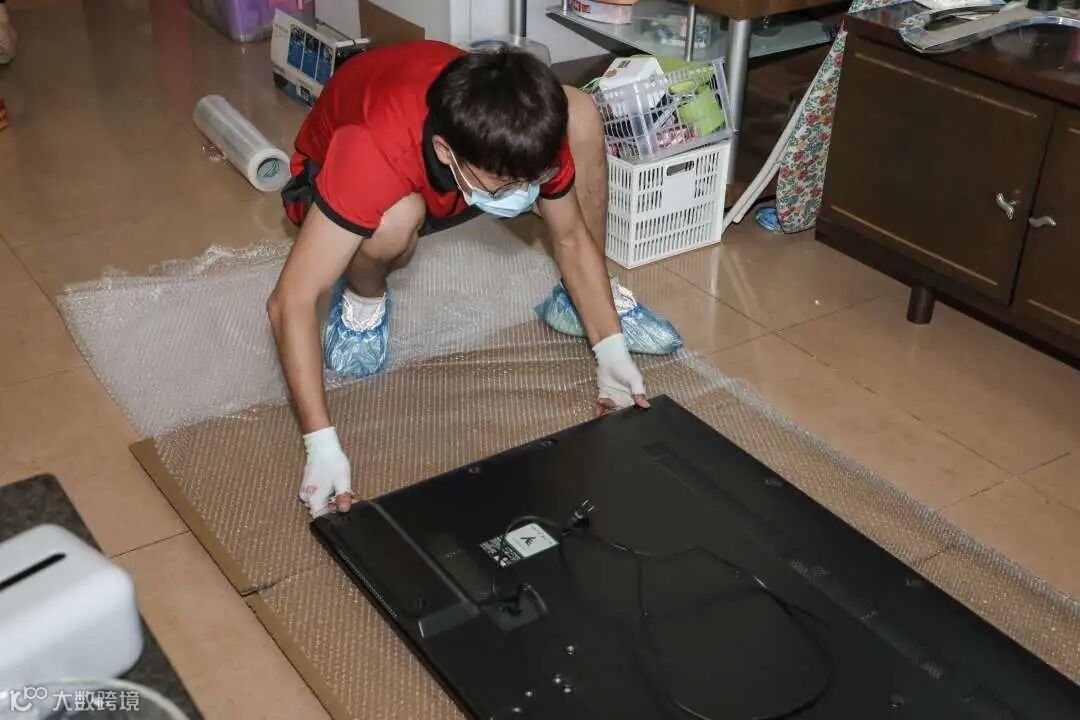 先把电视机表面擦拭干净,再用缠绕膜包裹;
