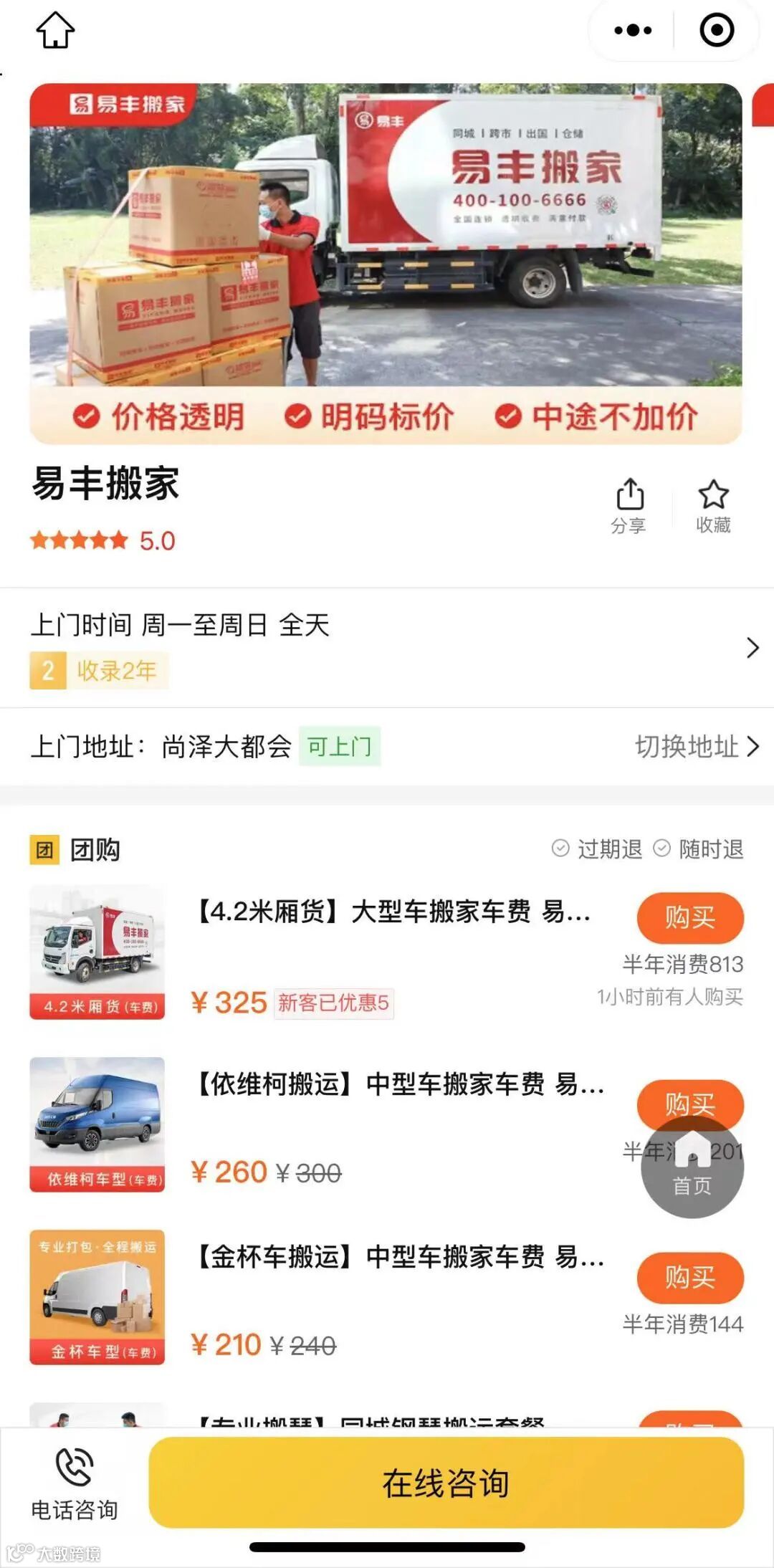 前不久,我们大众点评的运营同学发现了“很有意思”的一件事。在点评和美团上搜到了一个和易丰搬家“同名同姓”的公司,它主要是在湘潭周边从事搬家业务。