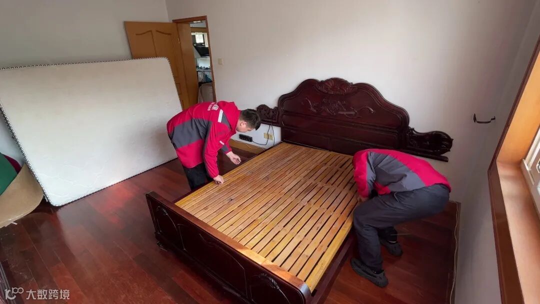 汪女士家中的双人床同样需要拆卸服务,先将床脚、床板依次拆卸下来,分别用气泡膜打包防护好。