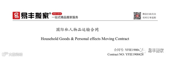易丰搬家国际部人员会将中英双译版本的合同发送给施女士,确定无误后就可以签订合同,交预订款了。