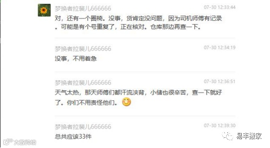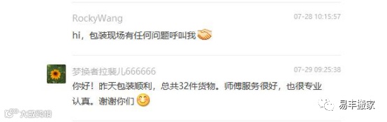 从整个搬家沟通过程中,都能看出施女士是个极有教养的人,易丰搬家遇到这样善解人意的客户,也是万分有幸,小丰也已经被施女士圈粉了。