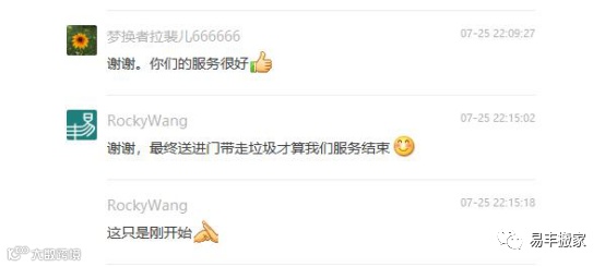 项目经理也礼貌的回复她:谢谢,最终送进门带走垃圾才算我们服务结束。
