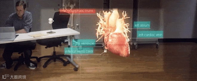 Magic Leap还是HoloLens最强的劲敌。这里补充一下,HoloLens是微软与美国西储大学医学院合作的项目,主要呈现人体医学模型,包括人体解剖的各方面,如下图:
