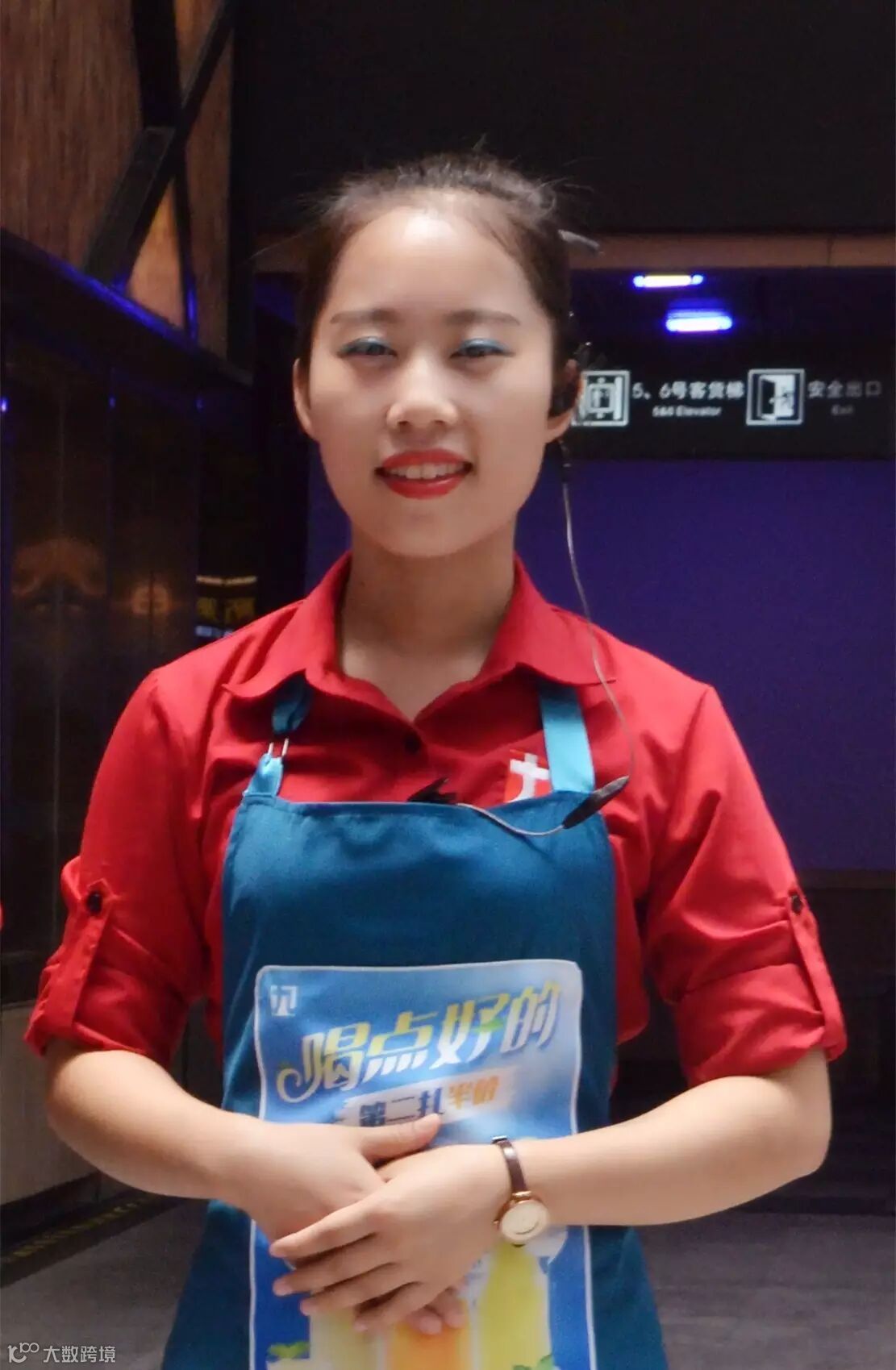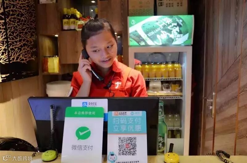 收银妹纸接个电话嘴角都洋溢微笑