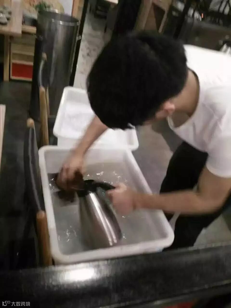典典本来休息的,一听说店里大扫除,就提前到店里帮忙洗茶壶。他用洗洁精水将茶壶表面的油渍清洗干净,过两遍清水后,擦干表面的水迹再统一摆放整齐。 这么细心的男生世间少有啊!▼