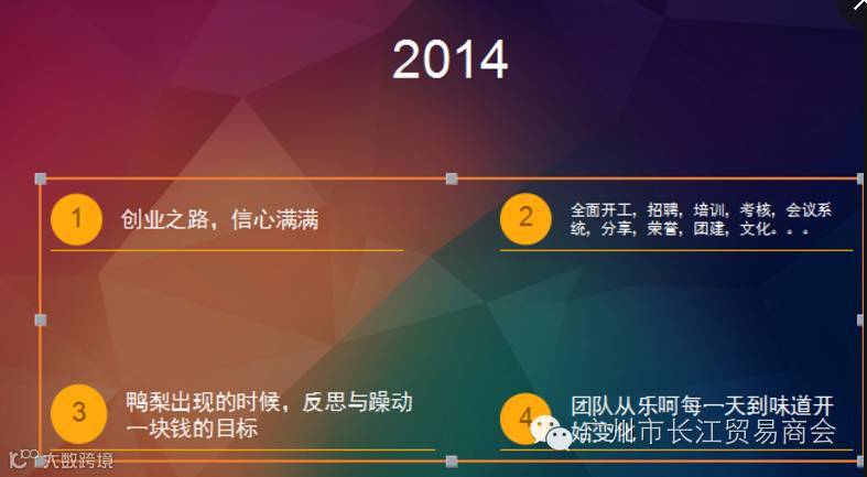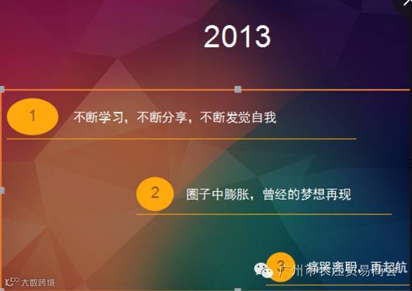 2013年,我在做业绩,做管理,做分享,学习中不断的活跃,我不觉得疲累,而是很享受,也获得了阿里,商会的一些殊荣,更大的是自信心的膨胀吧~~于是08年那个隐藏的梦想又出来了,我似乎忍无可忍,我想创业了......
